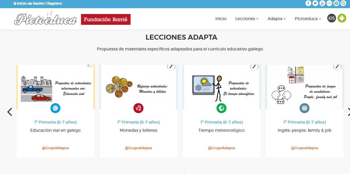 • Coincidiendo con el inicio del nuevo curso escolar se ha creado un nuevo apartado “Adapta”, que ofrece todo el contenido curricular de las materias de 1º de primaria de la comunidad autónoma gallega a través de actividades inteligibles y de fácil comprensión elaboradas por docentes expertos en la intervención en alumnado con Necesidades Específicas de Apoyo Educativo.